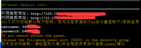 别着急!你还需要在云服务器以及宝塔面板内放通终端内显示的4个端口。